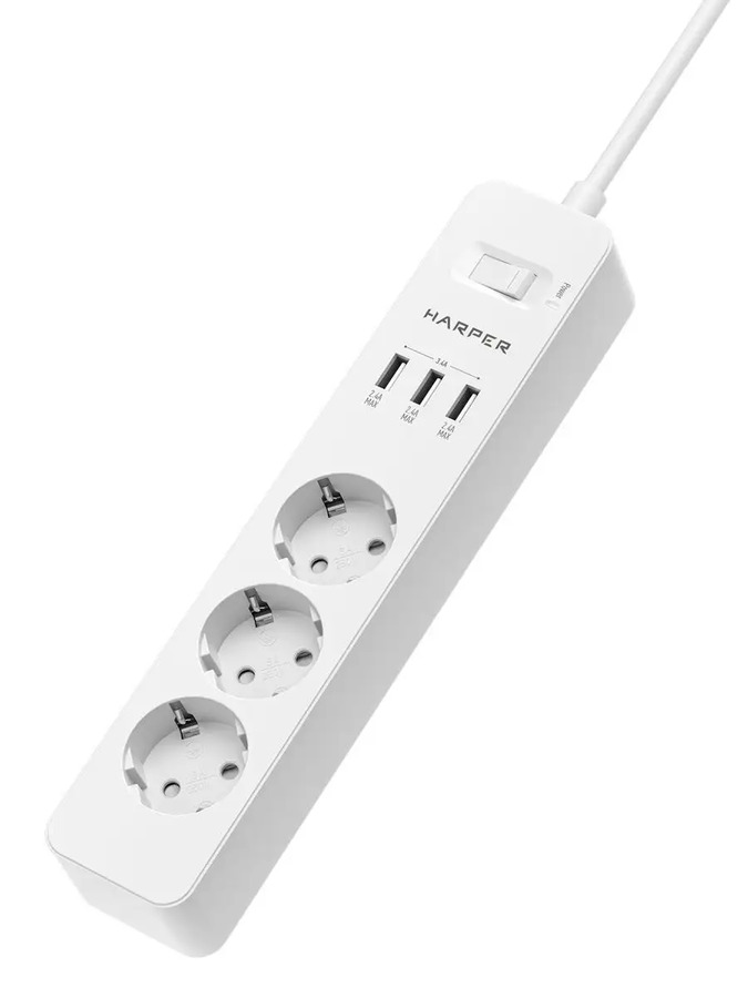 Надёжный и функциональный сетевой фильтр Harper UCH-325 оснащён разветвителем на 3 розетки и встроенным зарядным устройством с 3-мя USB-портами, совокупной мощностью 17 Вт, 3,4 А, 5 В. Длина кабеля - 3 метра. Это оптимальное расстояние удлинения для небольших квартир и офисов. Максимальная мощность подключаемой нагрузки - 3680 Вт. Фильтр Harper UCH-325 оборудован автоматической защитой от перепадов напряжения и тока. Гнёзда розеток оборудованы шторками безопасности.