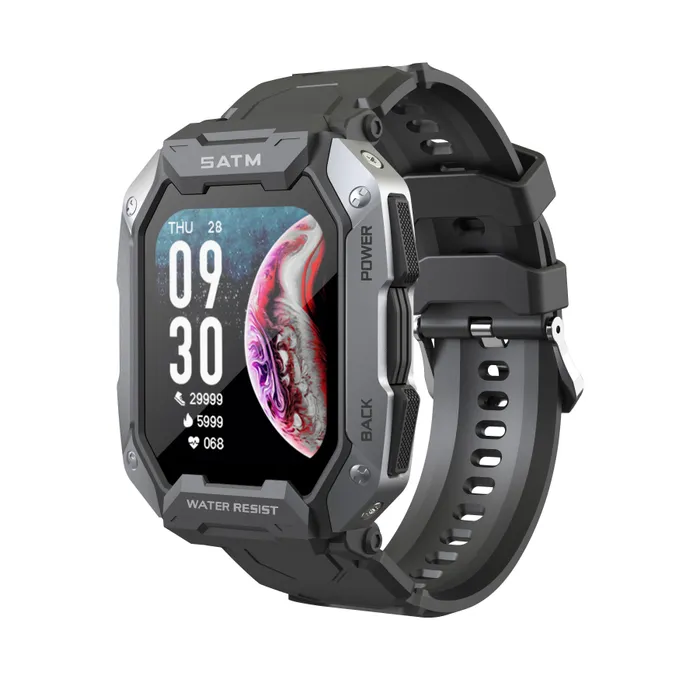Tiroki C20 - брутальные спортивные водонепроницаемые смарт часы в стиле милитари во влагозащищенном корпусе. С20 крепкие снаружи и изнутри они созданы для спорта, созданы для бездорожья, созданы для побед в экстремальных условиях. Погружение на глубину до 5 атмосфер (до 50 м глубины), 380 Mah батарея, цинковый металлический корпус устойчивый к падению, противоударный грязезащитный экран 1,7 дюймов Gorilla Glass, встроенный многоточёчный оптический датчик с мониторингом сердечного ритма и кислорода в крови 24 часа, 24 спортивный режима, мониторинг сна, подсчет калорий, звонки через BT.