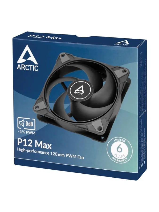 Вентилятор для охлаждения корпуса компьютера Arctic P12 Max продолжает успех своих предшественников линейки P, увеличивая управляемую скорость оборотов вплоть до 3300 об/мин. Отличительной особенностью линейки является сфокусированный воздушный поток и высокое статическое давление воздуха.